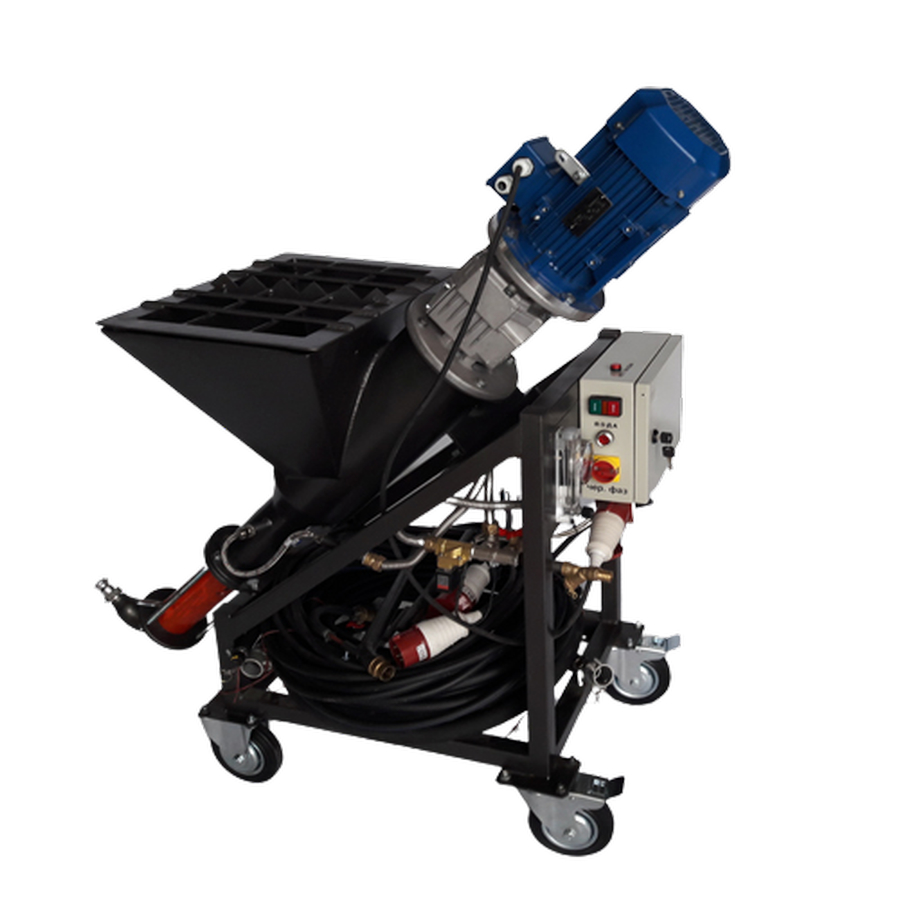 Высокопроизводительная штукатурная машина линейки Гермес 220/380, способная функционировать от сети напряжением как 380B, так и 220В.